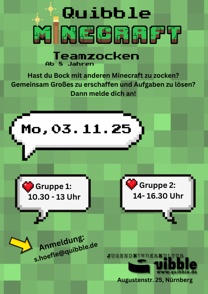 Es gibt zum zweiten Mal ein Minecraft-Teamzocken für Kids ab 8 Jahren.